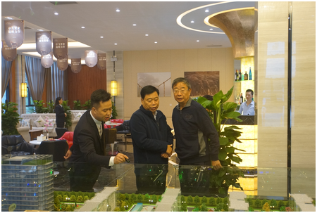 中國(guó)飛行試驗(yàn)研究院黨委書記宋躍進(jìn)(右一)和華原控股有限公司總裁魏進(jìn)民(右二)聽取項(xiàng)目介紹