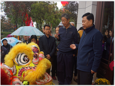 中國(guó)飛行試驗(yàn)研究院黨委書記宋躍進(jìn)(右二)和華原控股有限公司總裁魏進(jìn)民(右一)為舞獅點(diǎn)睛